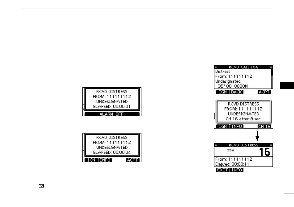 “RCVD DISTRESS” is displayed and the backlight blinks. ➥