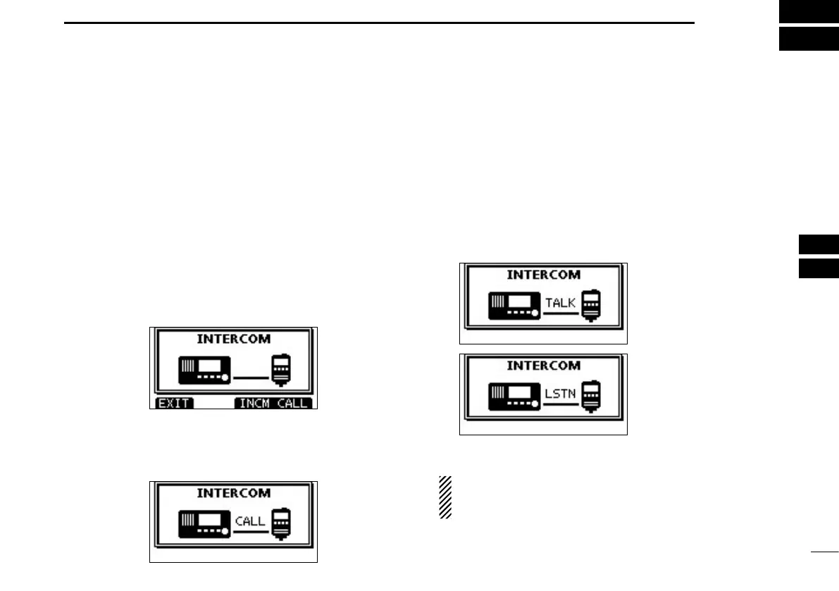 Hold down [INCM CALL] to sound the intercom beeps. e