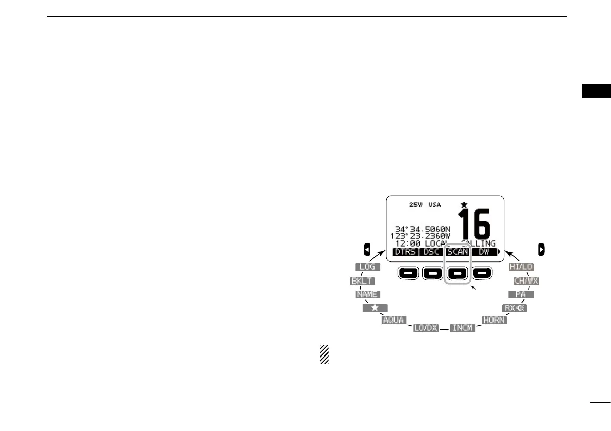 “SCAN 16” is displayed during a Priority scan; “SCAN”