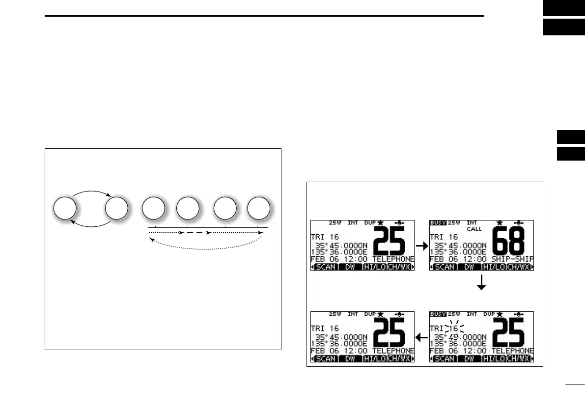 • If a signal is received on the Call channel during Tri-watch,