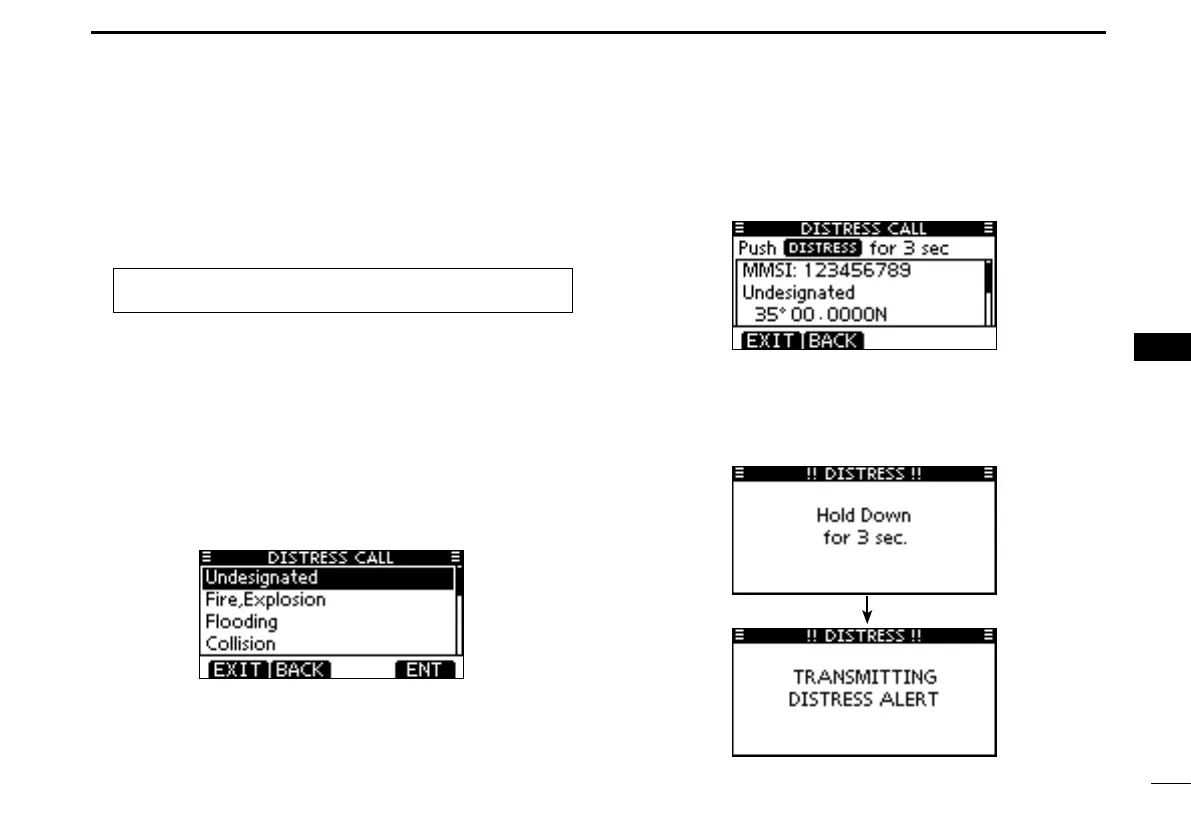 r Hold down [DISTRESS] for 3 seconds to transmit the Dis-