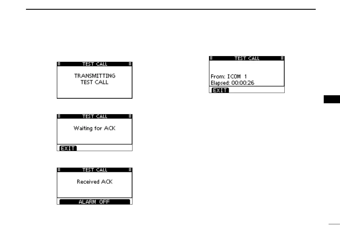 Push [CALL] to transmit the Test call. r