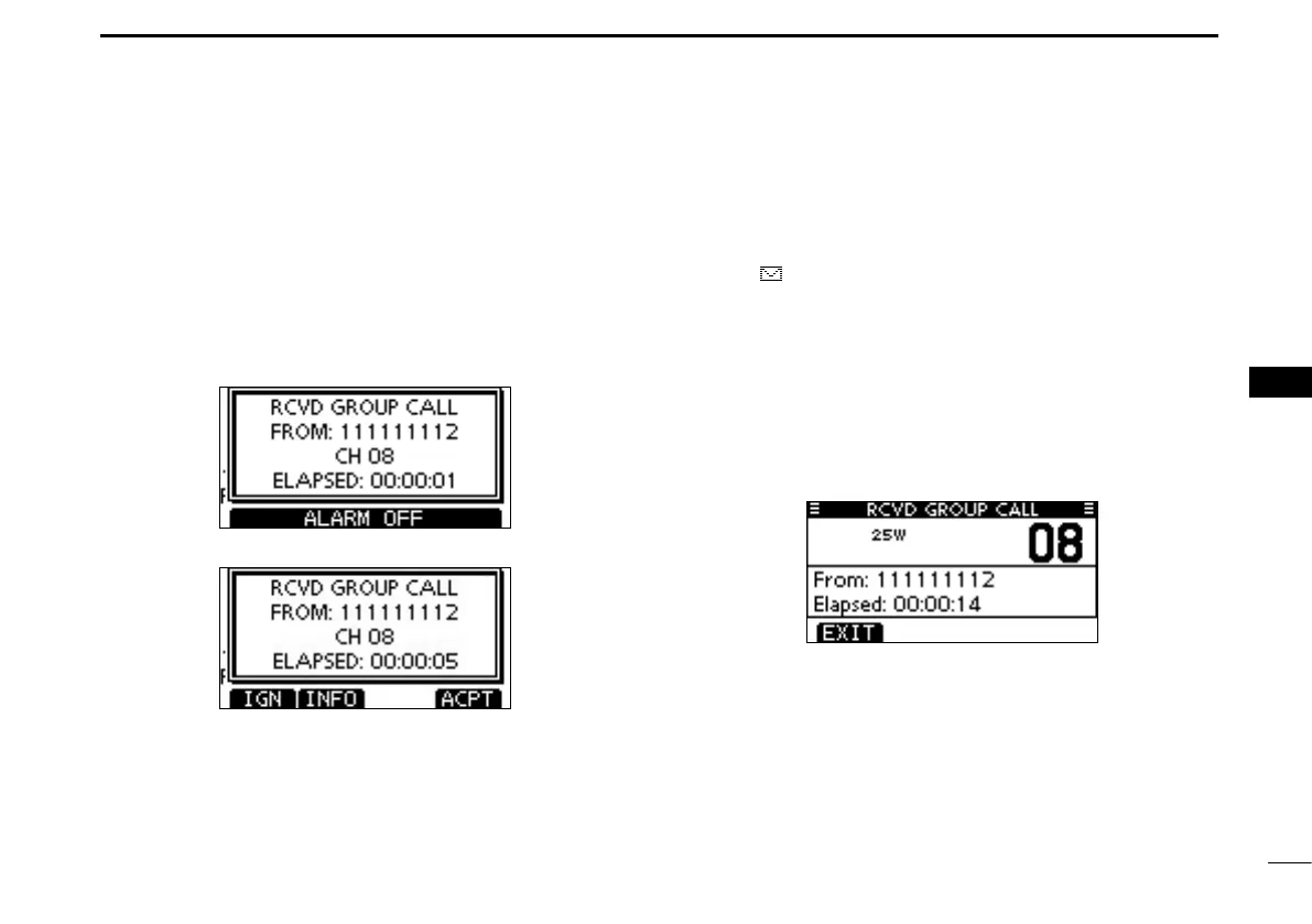 ➥ “RCVD GROUP CALL” pops up. The LCD backlight may
