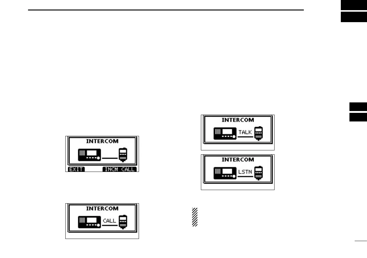 Hold down [INCM CALL] to sound the intercom beeps. e