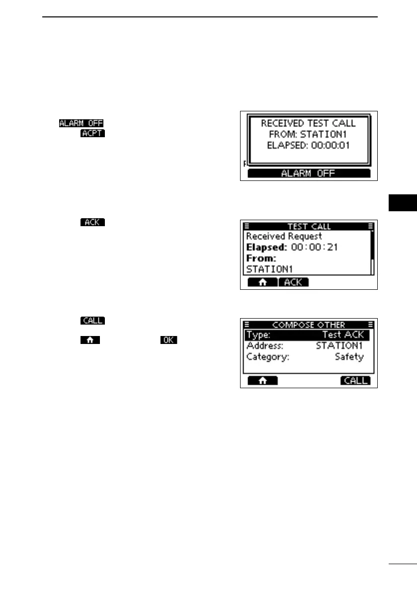 • “Transmitting Test ACK” is displayed.