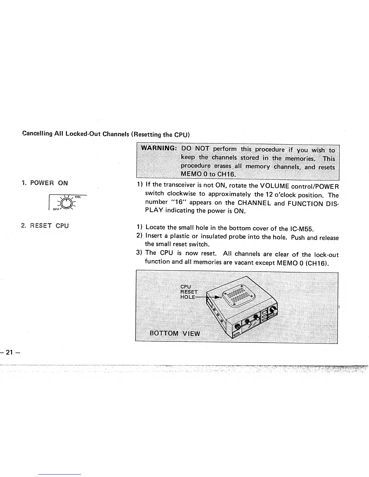 Icom IC-M55 - Cancelling All Locked-Out Channels