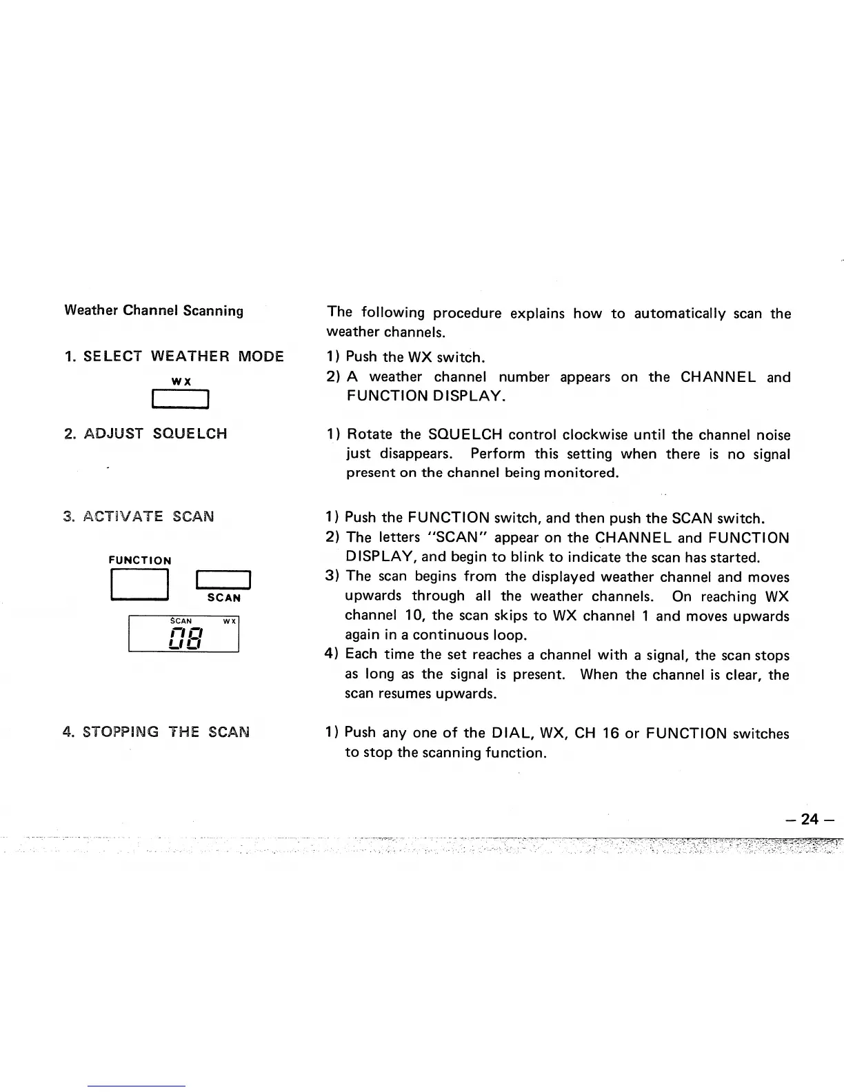 Icom IC-M55 - Weather Channel Scanning; Select Weather Mode; Adjust Squelch; Activate Scan