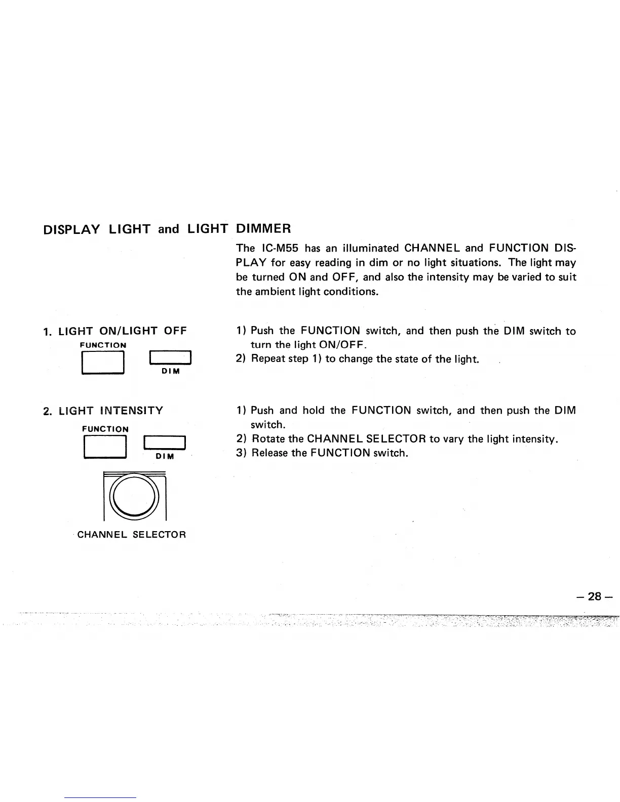 Icom IC-M55 - Display Light and Light Dimmer; Light On;Light off; Light Intensity