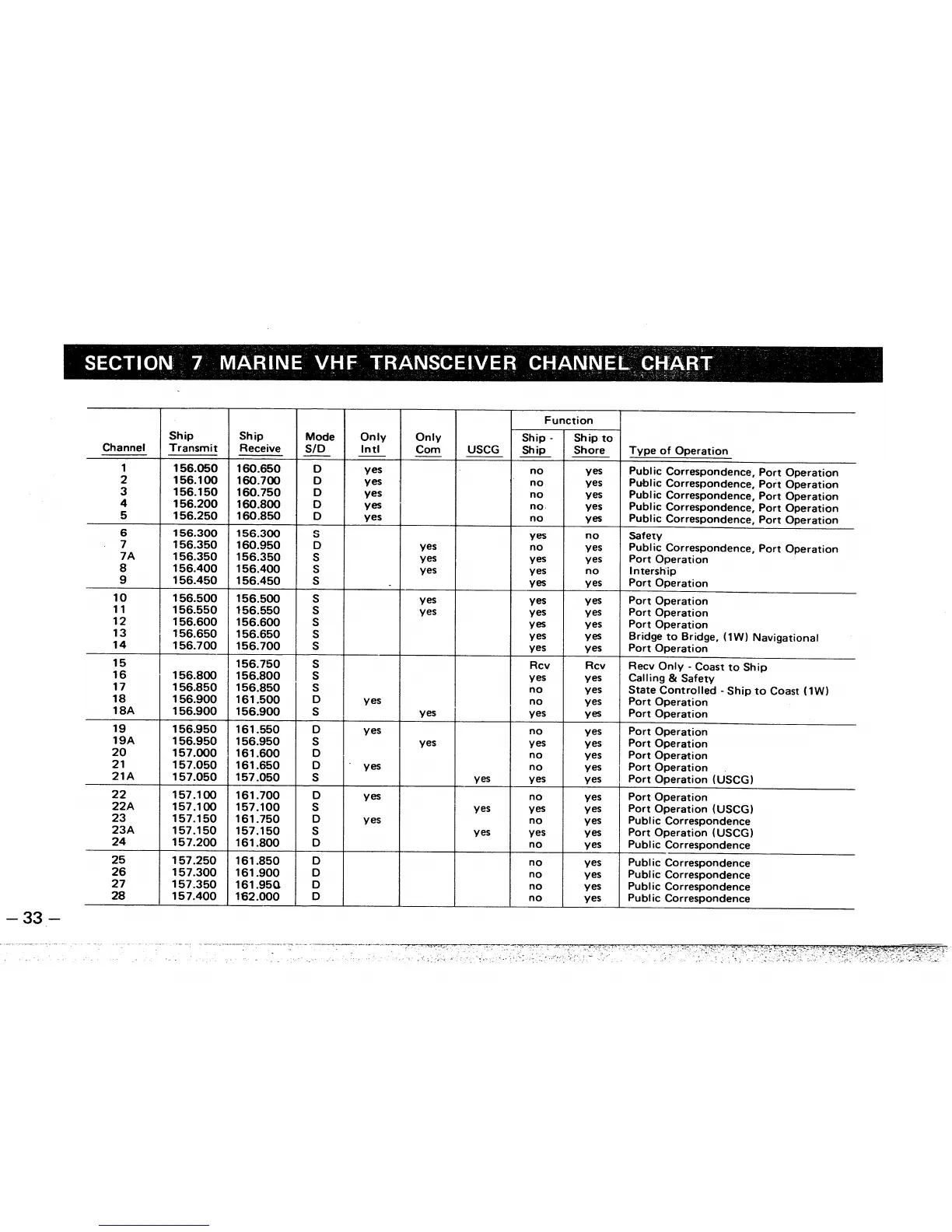 Icom IC-M55 - Marine VHF Transceiver Channel Chart