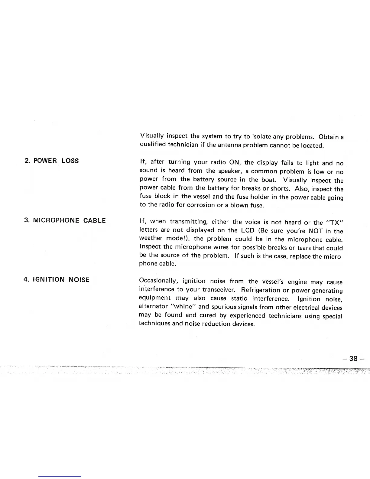 Icom IC-M55 - Power Loss; Microphone Cable; Ignition Noise