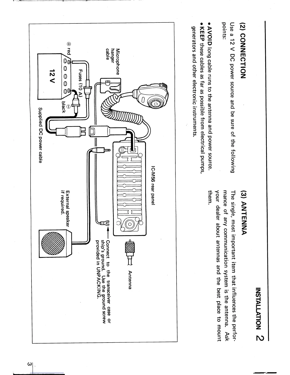 Icom IC-M56 - Installation: Connections; Connection and Power Supply; Antenna Setup