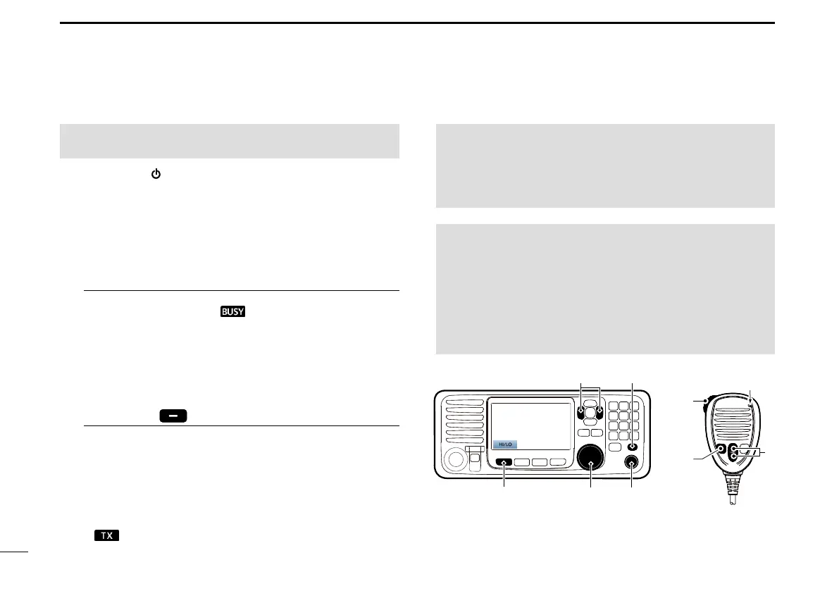 1. Hold down [ ] for 1 second to turn ON the transceiver.