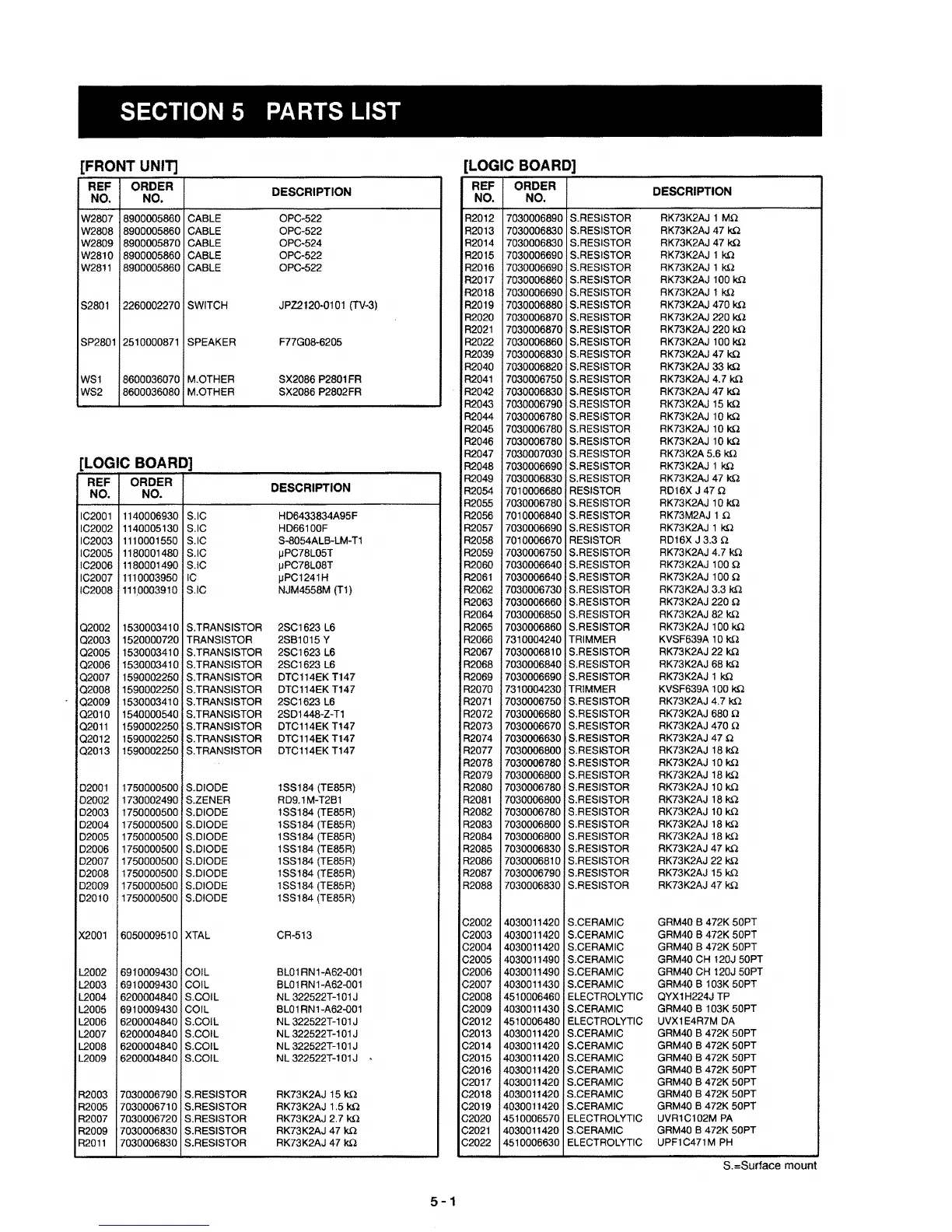 Icom IC-M700PRO - Parts List; Front Unit; Logic Board