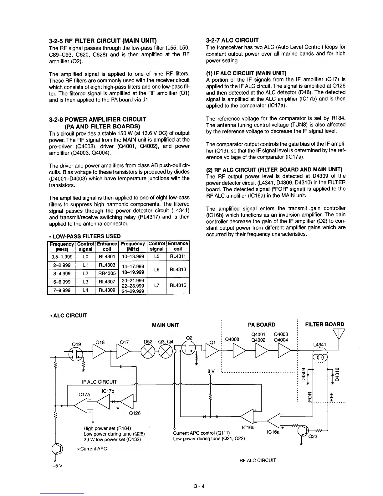 Icom IC-M700PRO - Power Amplifier Circuit (PA and Filter Boards); Low-Pass Filters Used; IF ALC Circuit (Main Unit); RF ALC Circuit (Filter Board and Main Unit)
