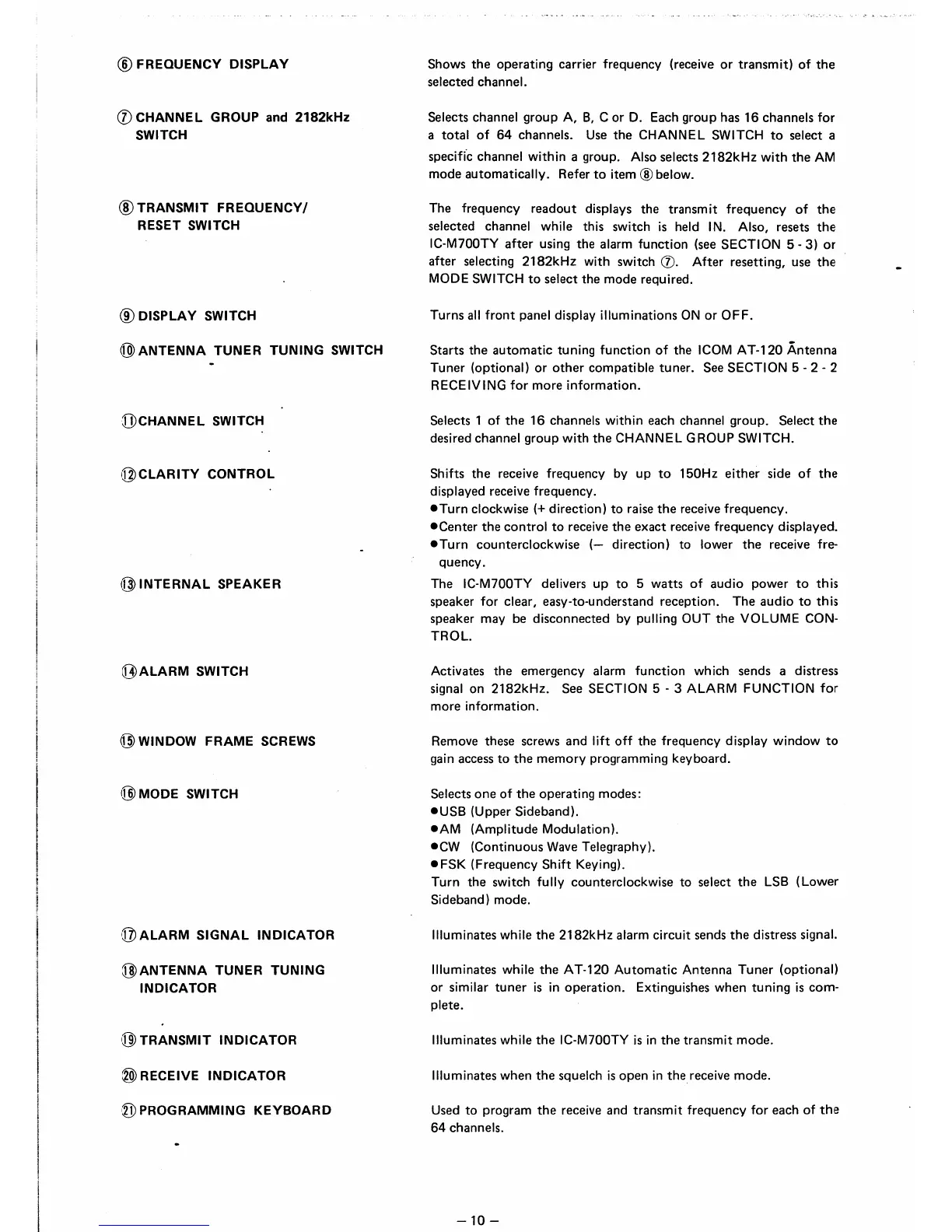 Icom IC-M700TY - Front Panel Controls (Part 2)