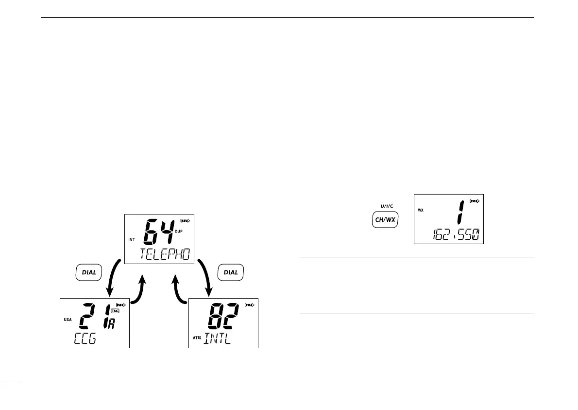 q Push [CH/WX•U/I/C] to select the regular channel.