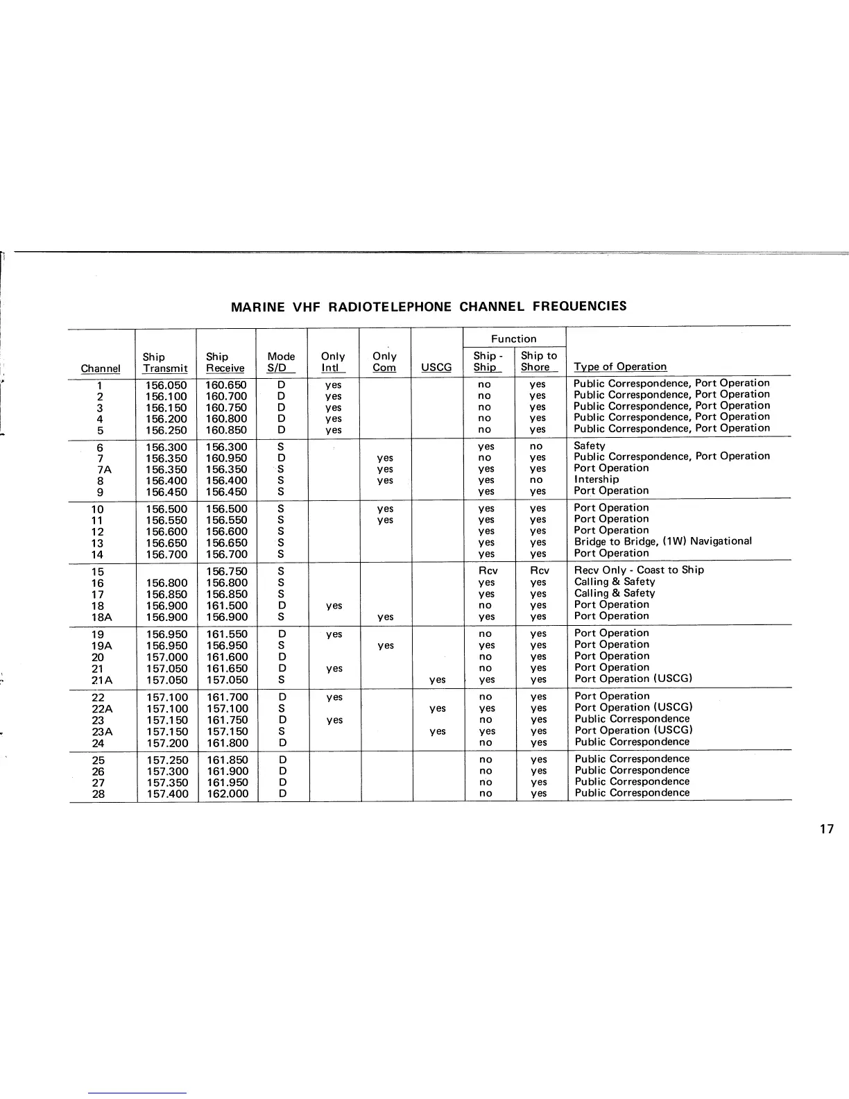 Icom IC-M80 - Marine VHF Channel Frequencies; Channel Frequencies (1-28 A); Channel Frequencies (60-88 A)