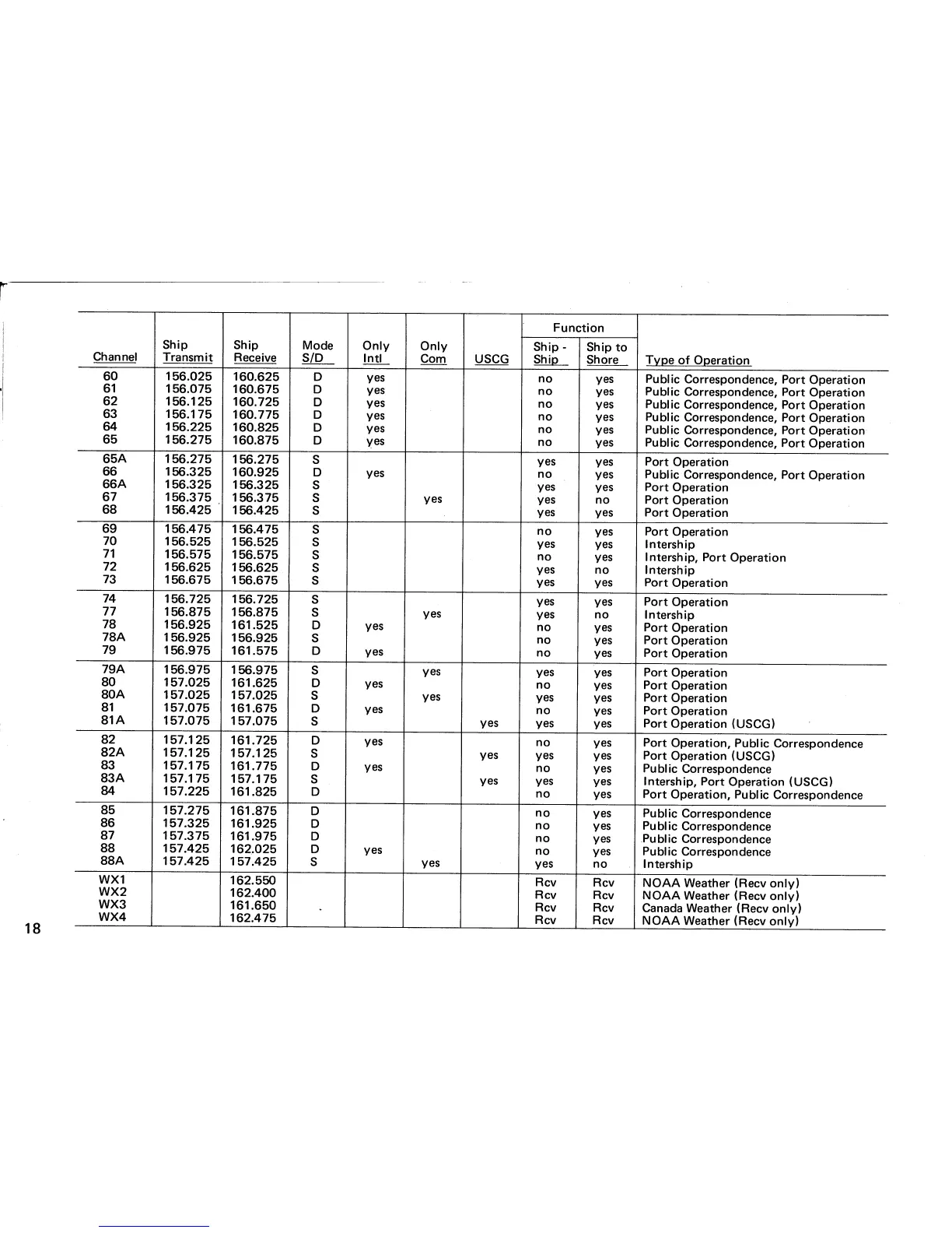 Icom IC-M80 - Marine VHF Channel Frequencies (Continued); Channel Frequencies (60-88 A & WX)