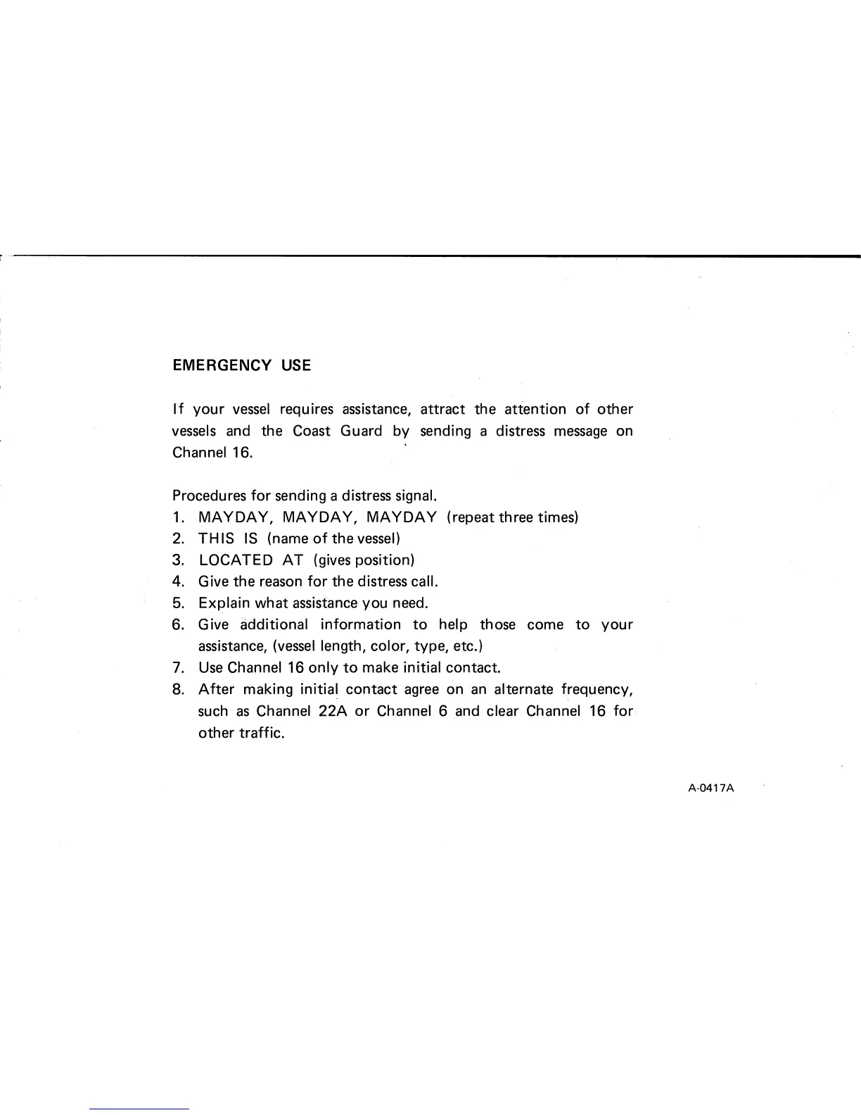 Icom IC-M80 - Emergency Use; Distress Signal Procedures; Emergency Channel Usage