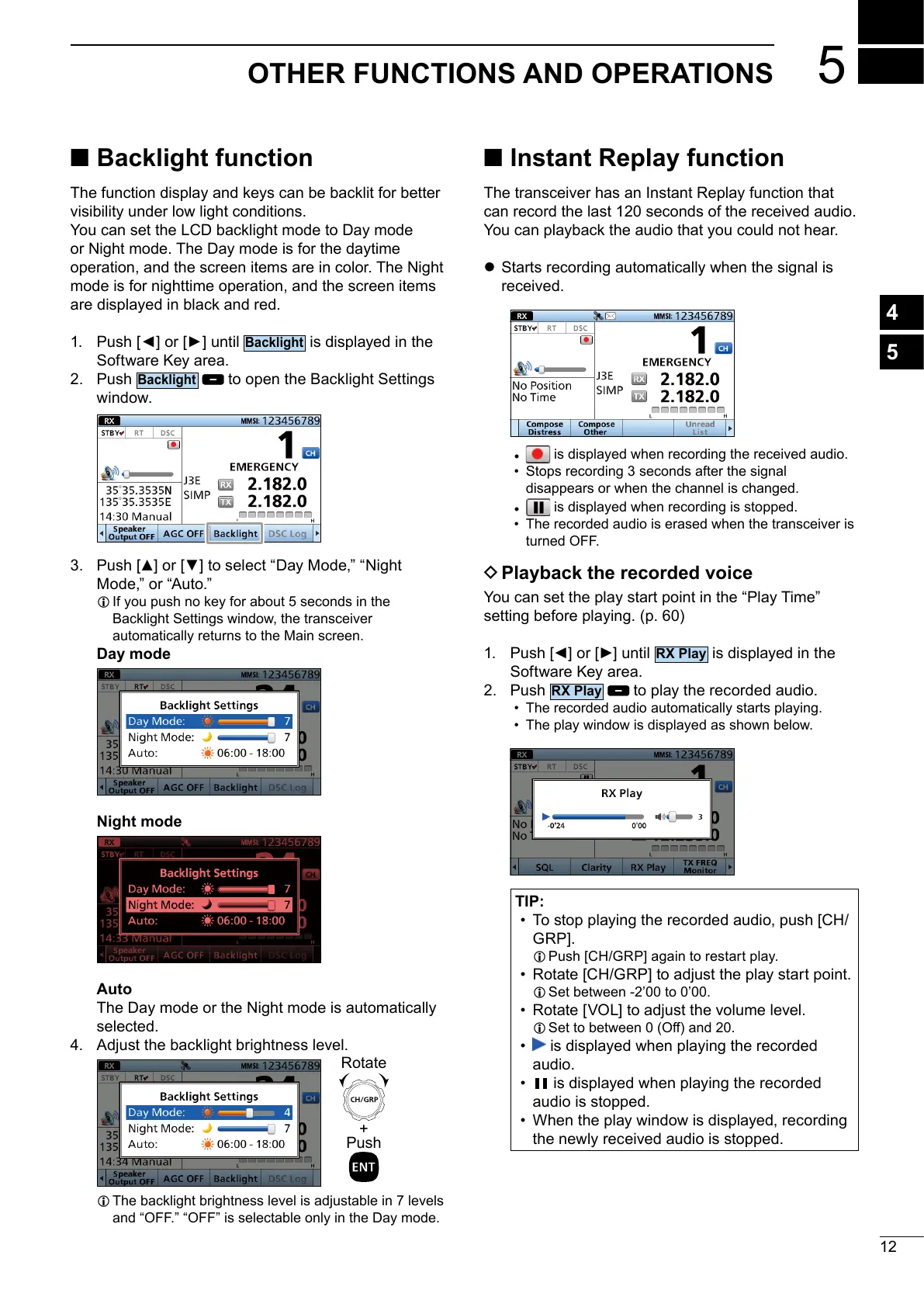 The transceiver has an Instant Replay function that