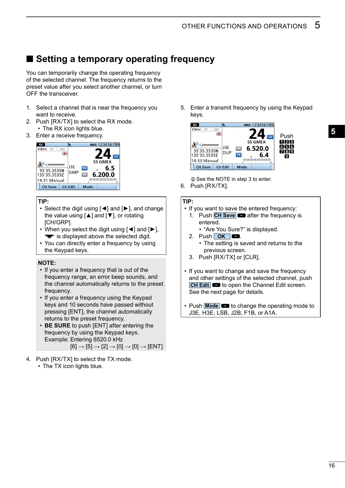 • If you want to change and save the frequency