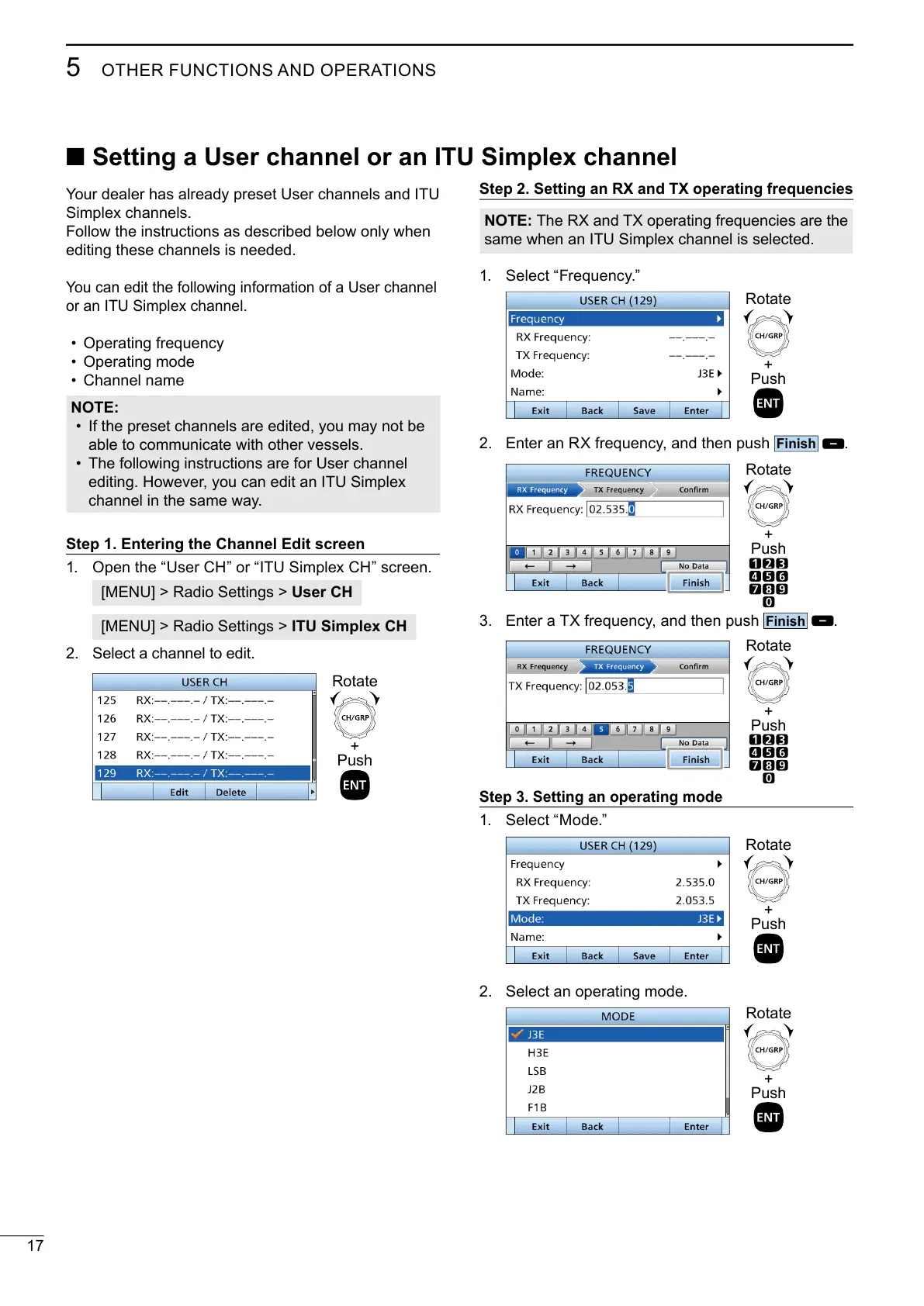 ■ Setting a User channel or an ITU Simplex channel