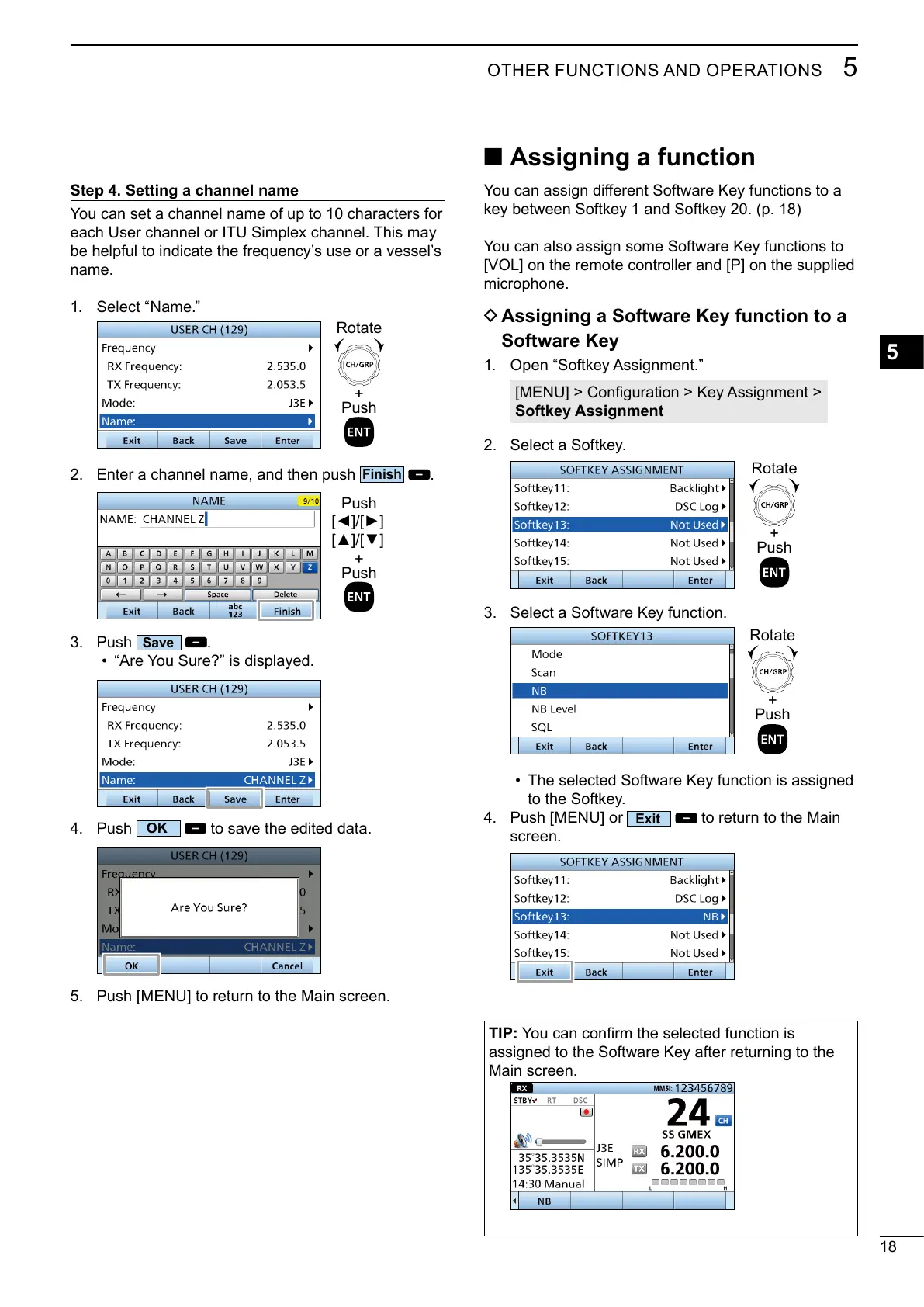 You can also assign some Software Key functions to