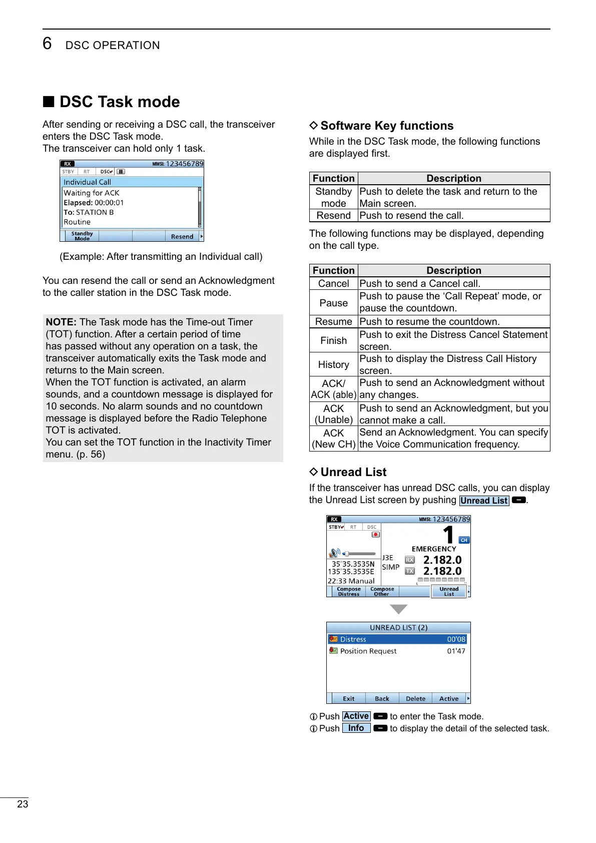 If the transceiver has unread DSC calls, you can display