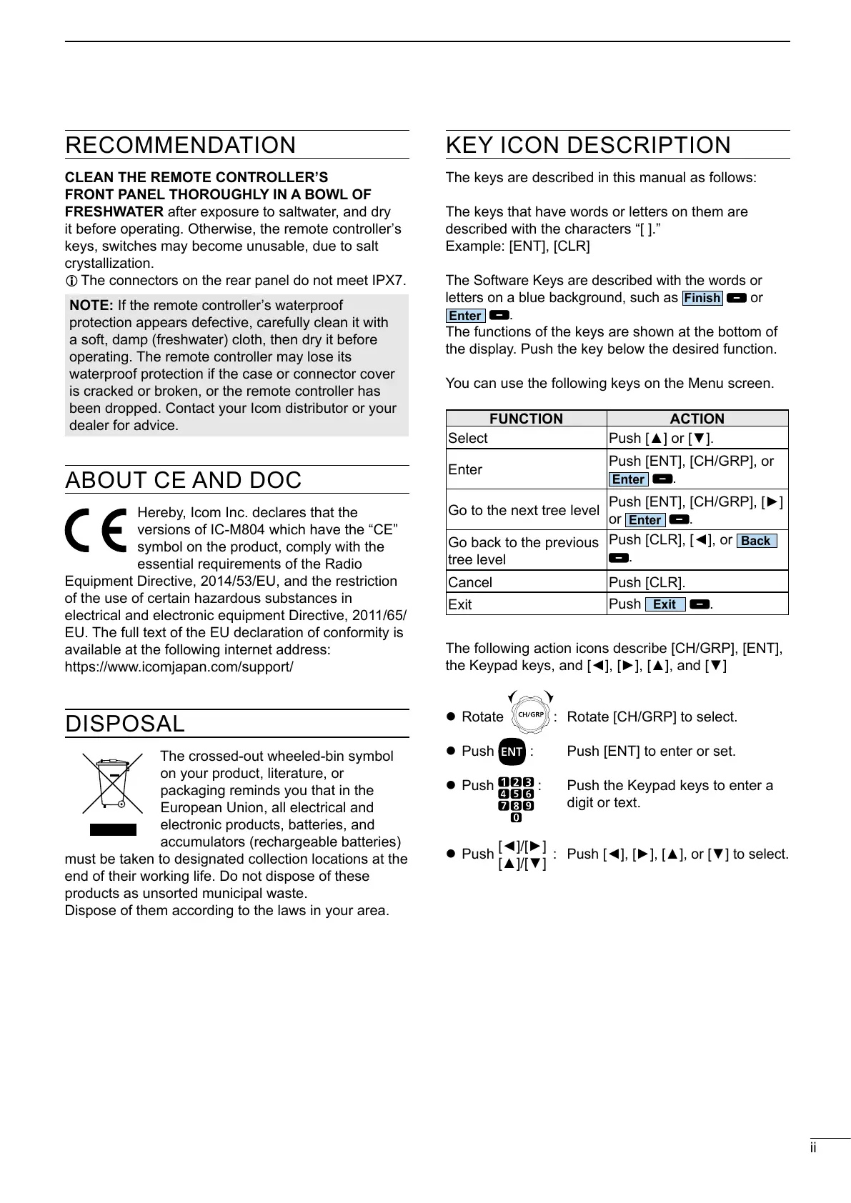 versions of IC-M804 which have the “CE”
