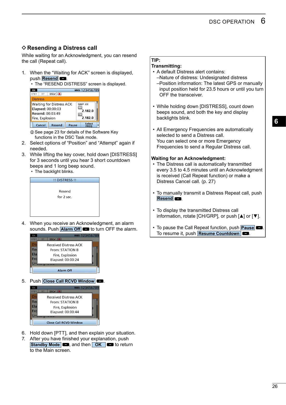 • The “RESEND DISTRESS” screen is displayed.