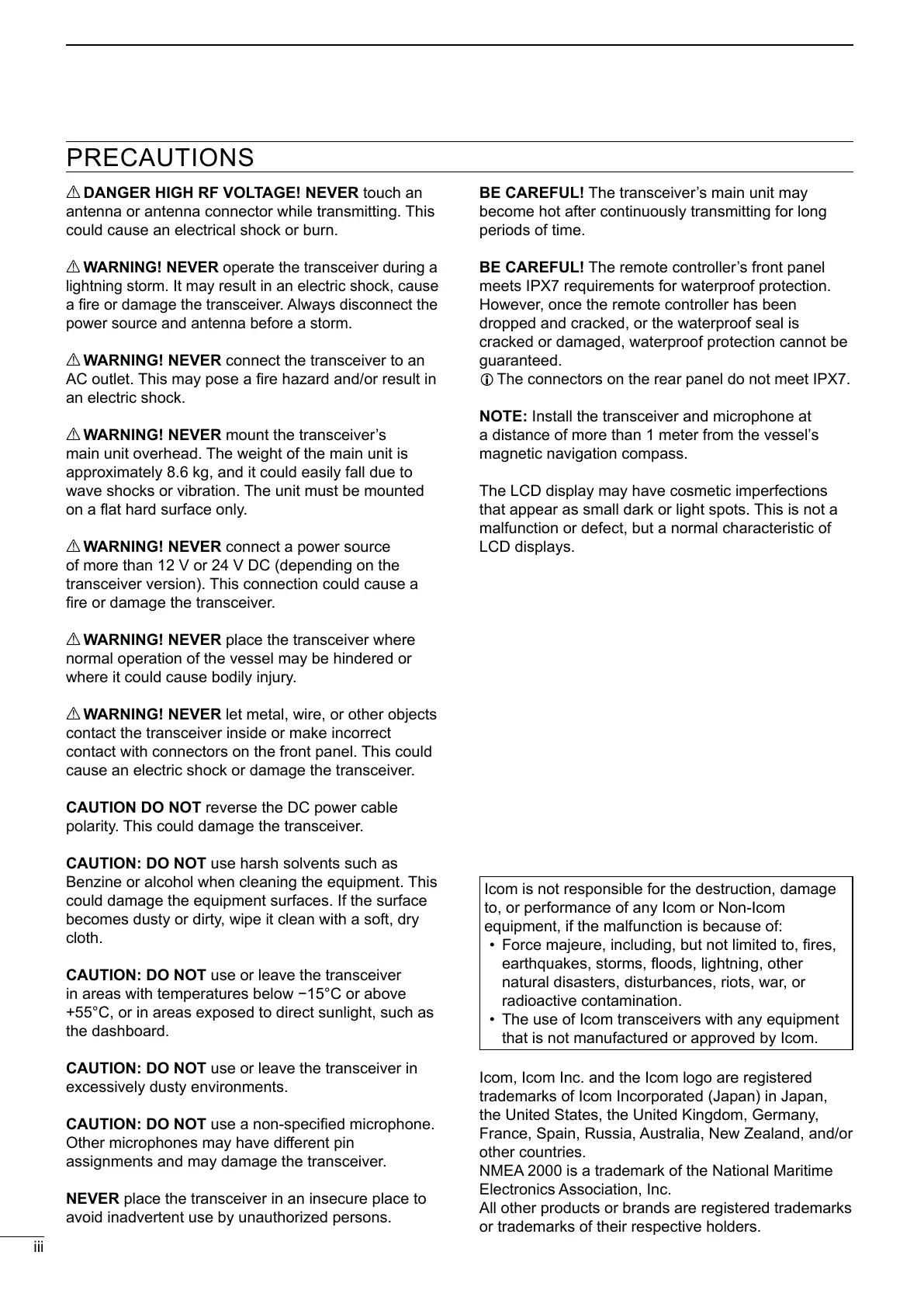 Icom is not responsible for the destruction, damage
