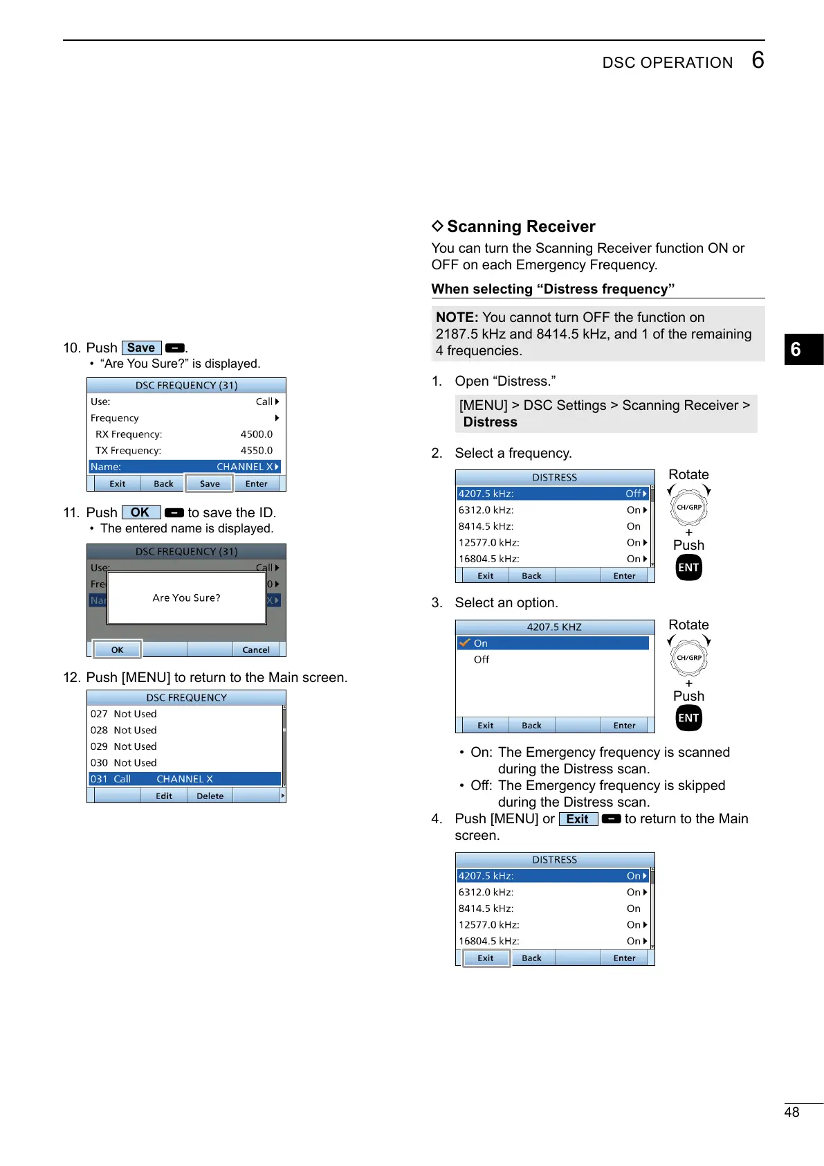 [MENU] > DSC Settings > Scanning Receiver >