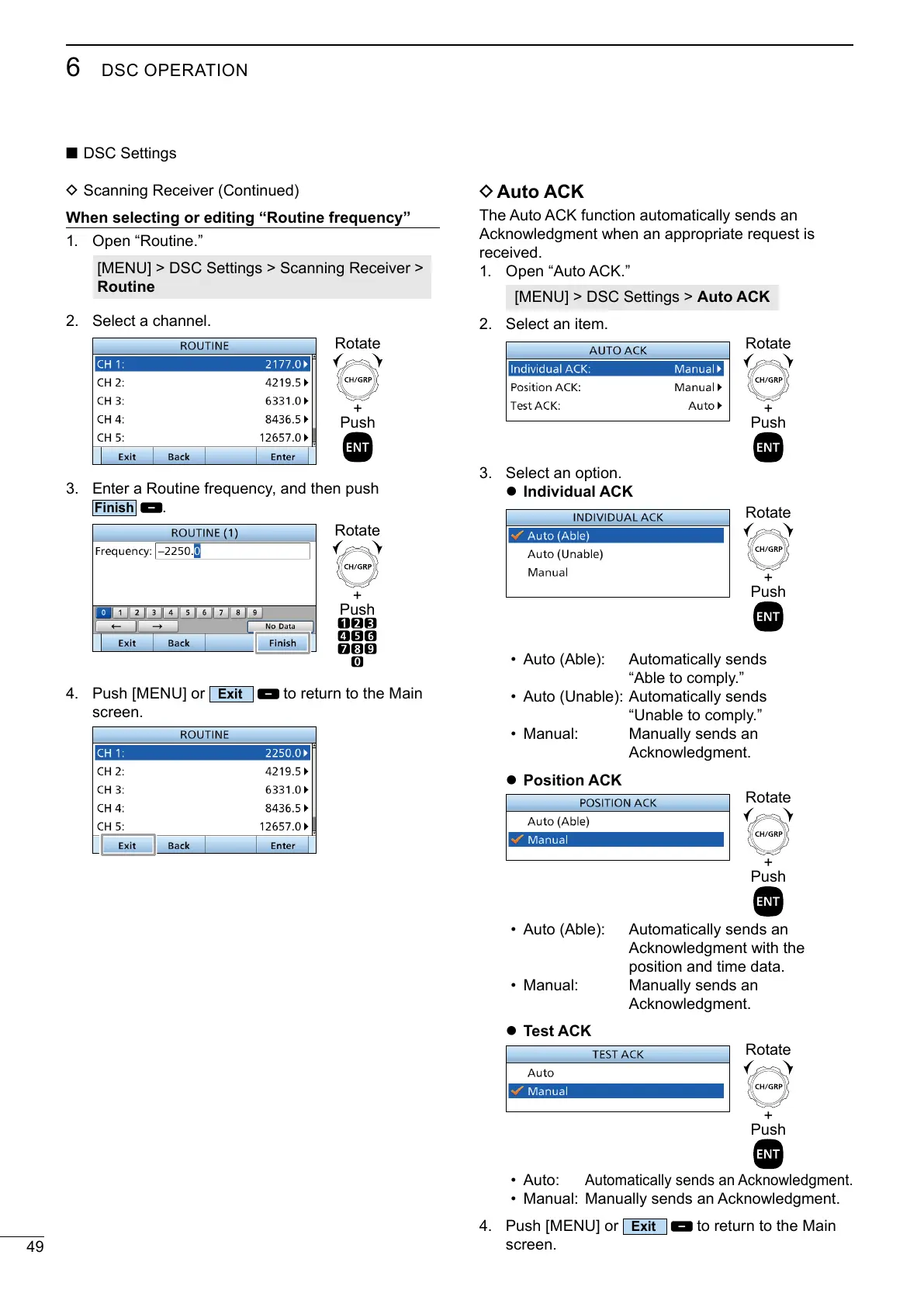 [MENU] > DSC Settings > Auto ACK