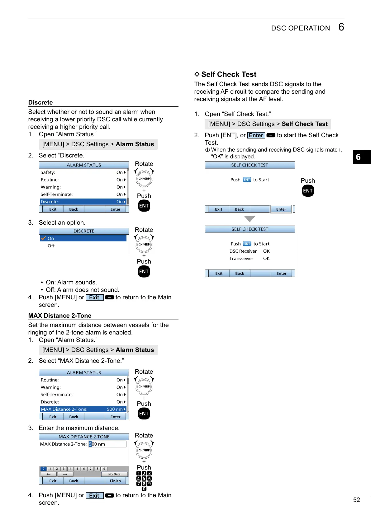 [MENU] > DSC Settings > Self Check Test