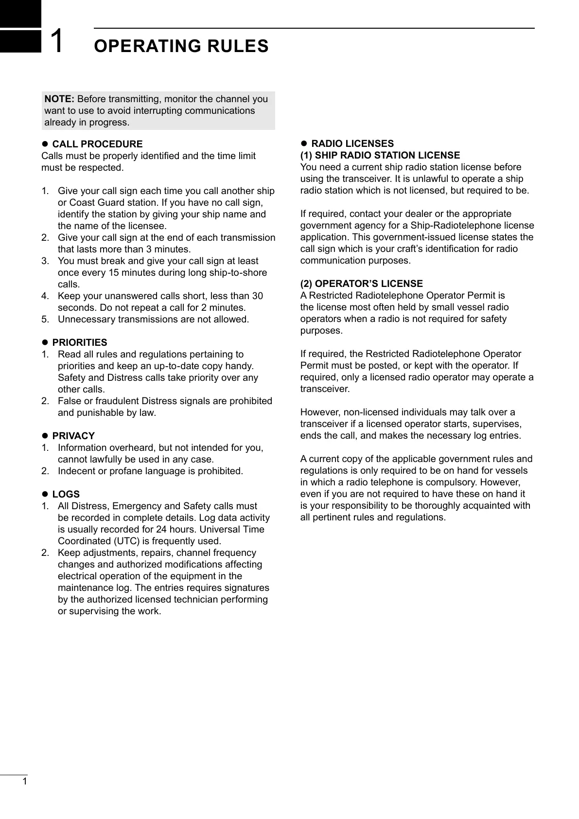 using the transceiver. It is unlawful to operate a ship