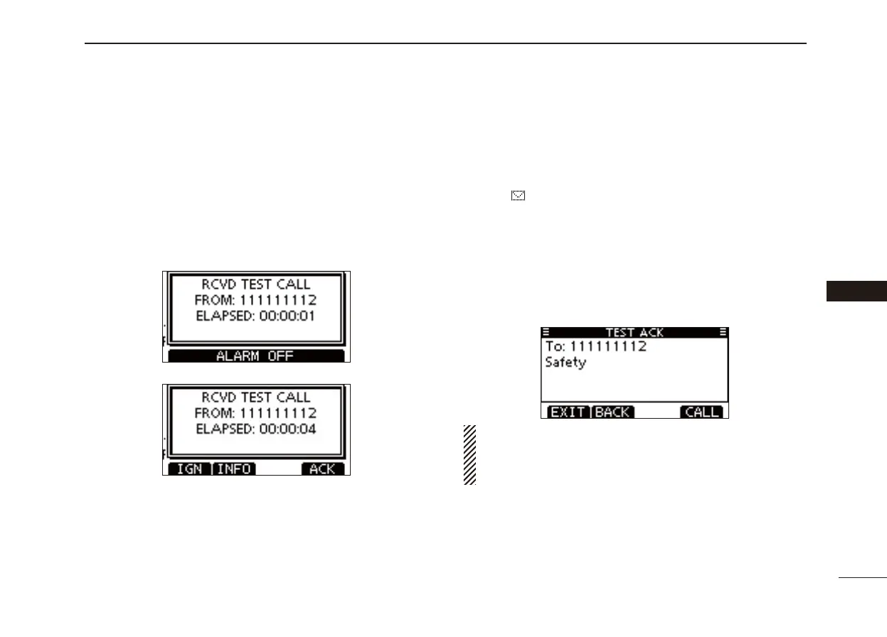 ➥ “RCVD TEST CALL” pops up. The LCD backlight blinks for