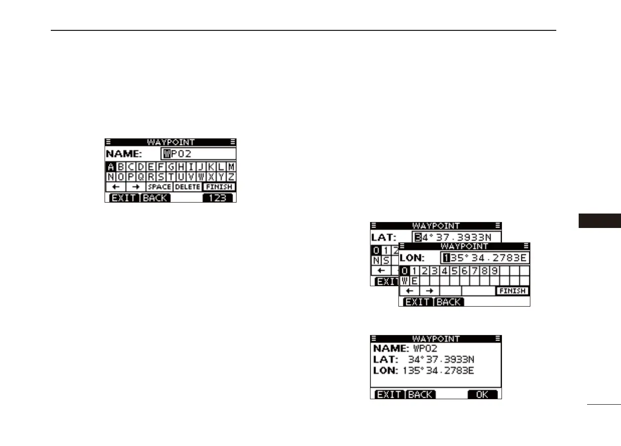 After entering the name, select “FINISH” by pushing [ e Y]/