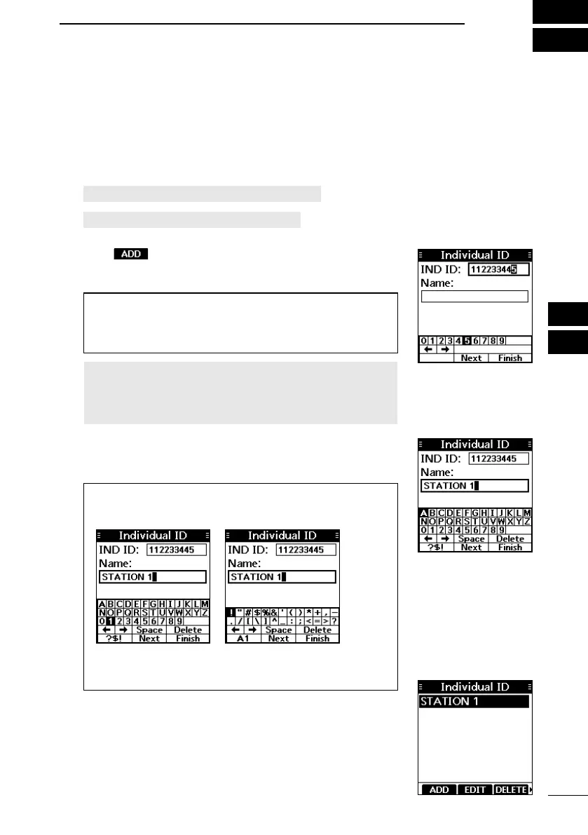 1. Open the “Individual ID” or “Group ID” screen.