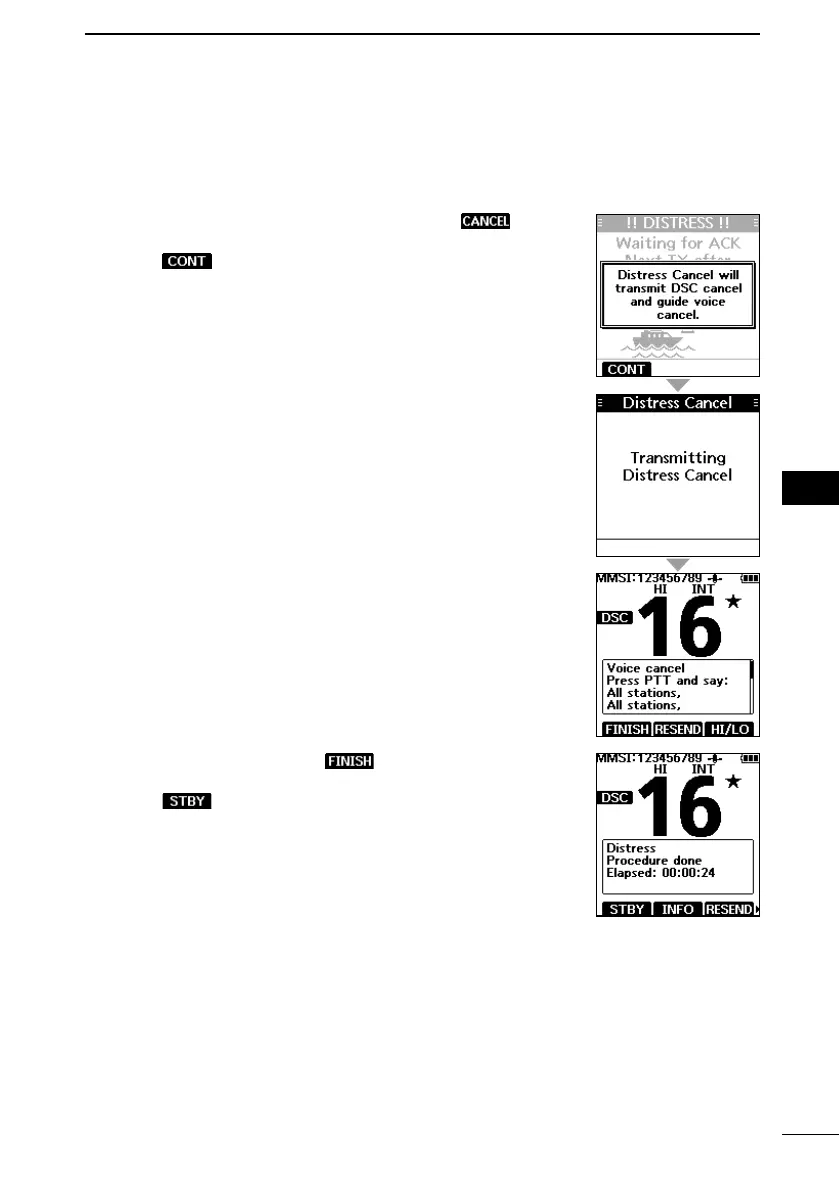 send a Distress Cancel call to cancel the call as soon as possible while waiting for an