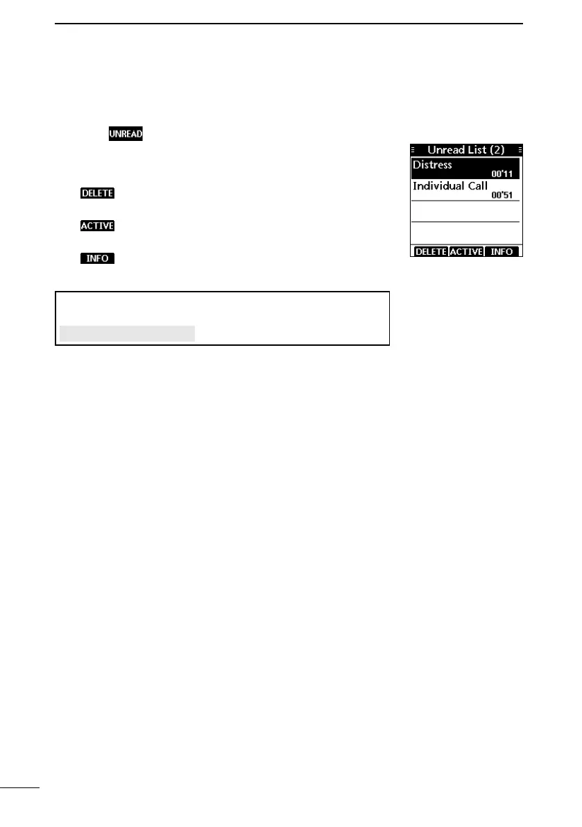 If the transceiver has unread DSC calls, you can check them in the “Unread List” screen.
