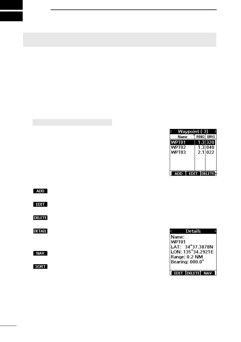The transceiver saves up to 50 waypoints in the Waypoint list.