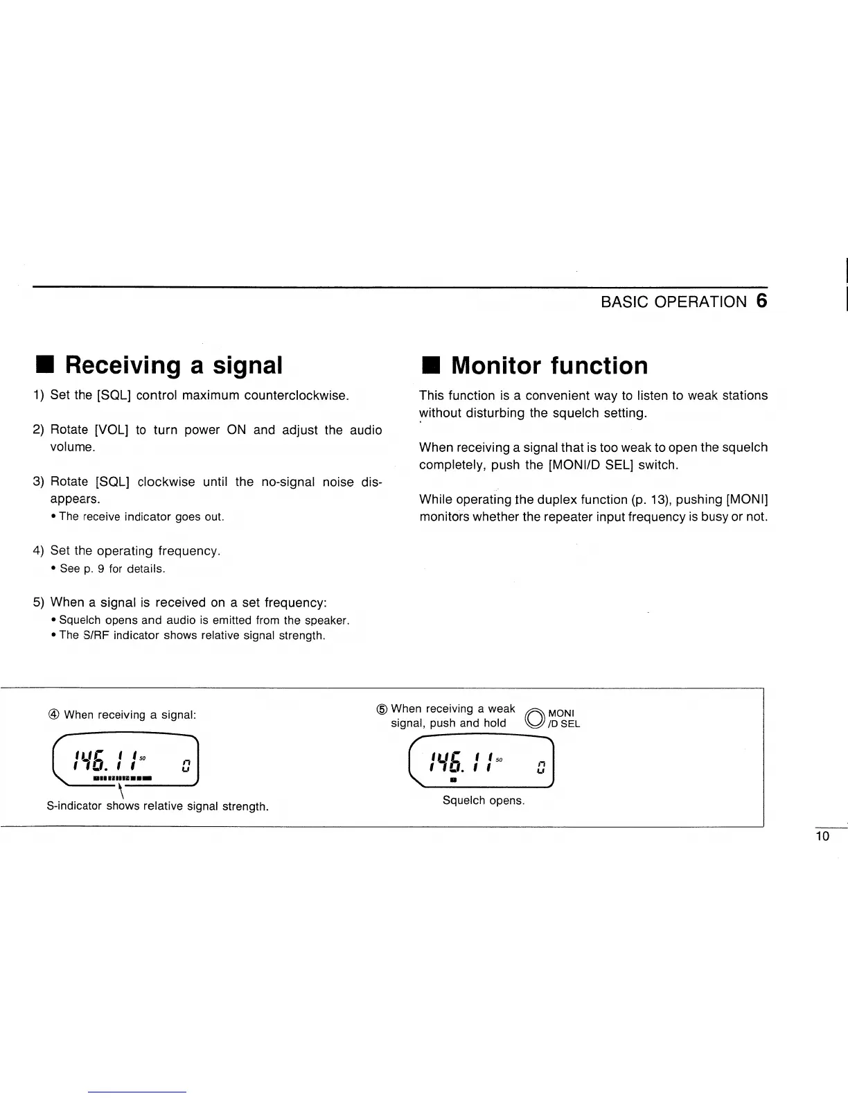 Icom IC-P2A - Receiving a Signal; Monitor Function