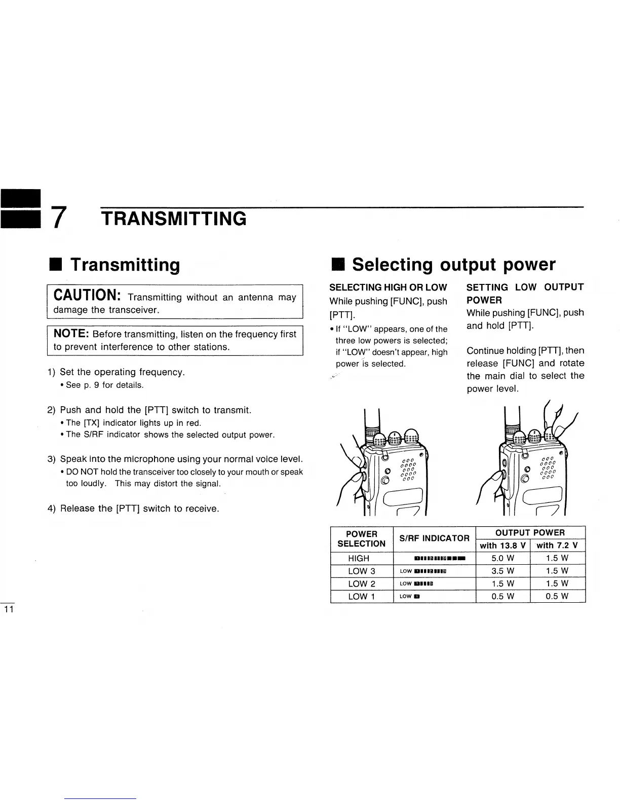 Icom IC-P2A - Transmitting; Selecting Output Power
