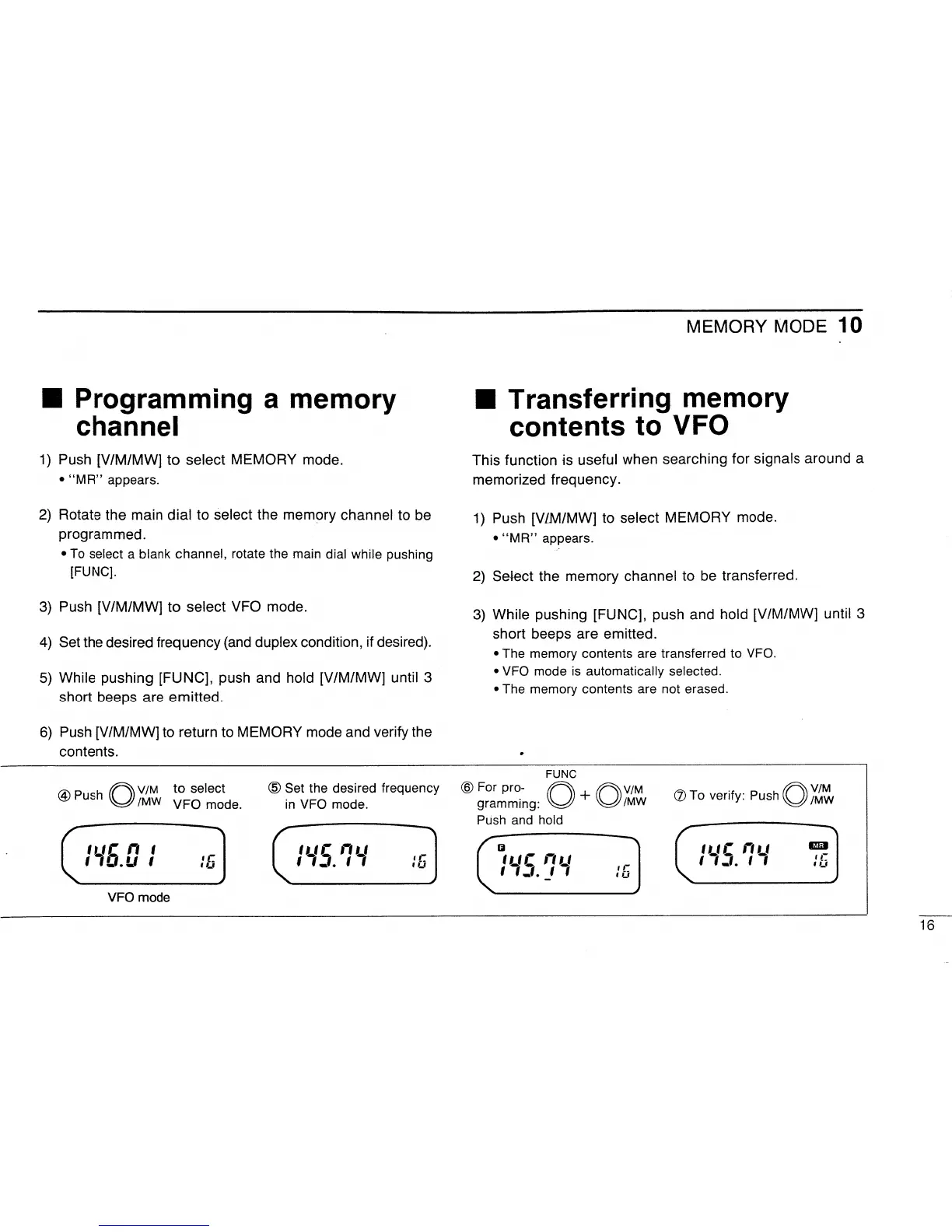 Icom IC-P2A - Programming a Memory Channel; Transferring Memory Contents to VFO