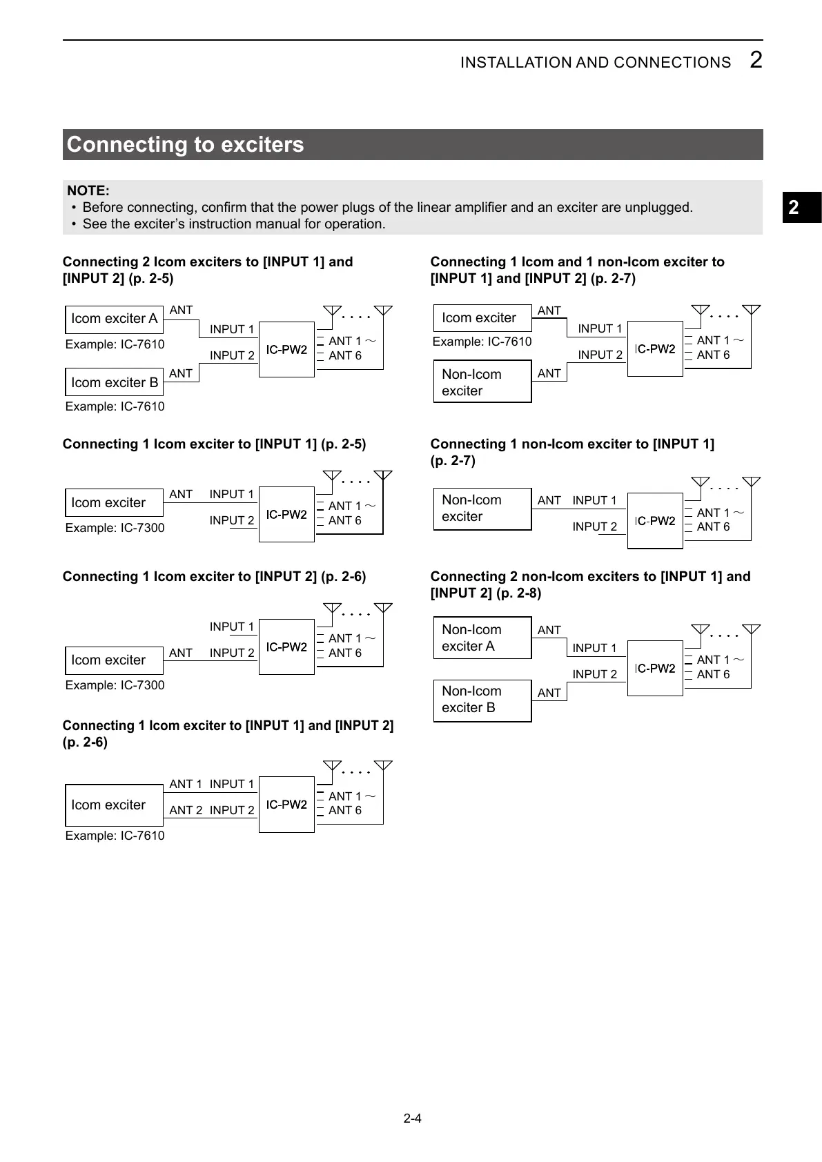 Connecting 1 Icom exciter to [INPUT 2] (p. 2-6)