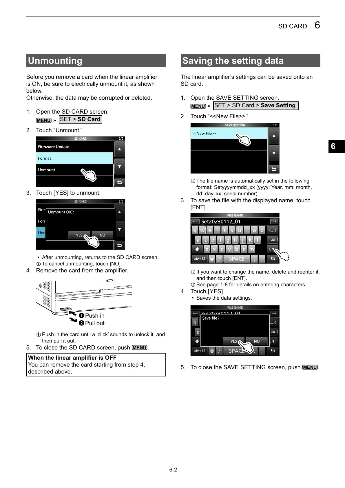 SET > SD Card > Save Setting
