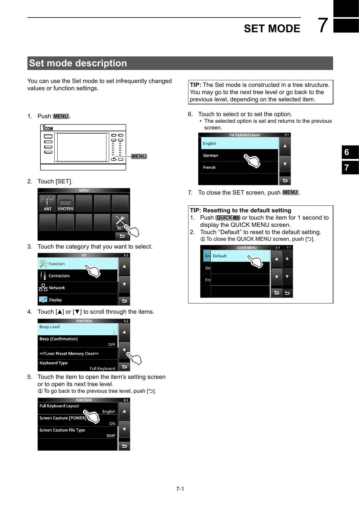 TIP: The Set mode is constructed in a tree structure.
