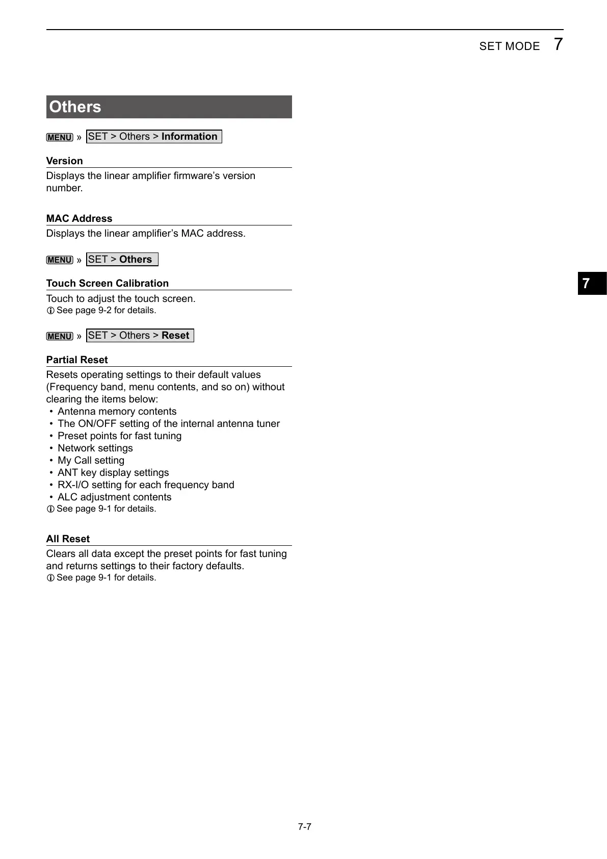 SET > Others > Reset