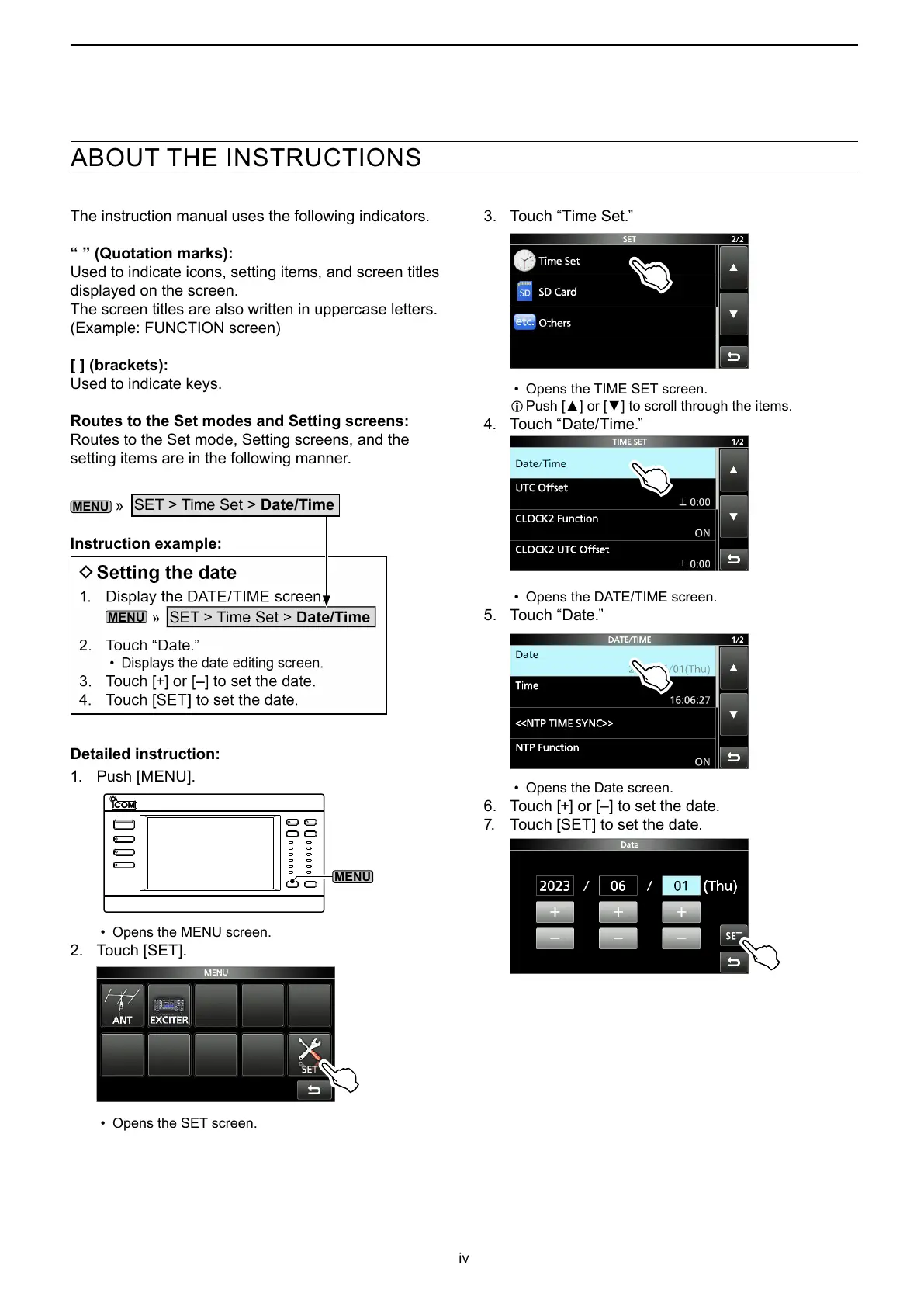 Routes to the Set modes and Setting screens: