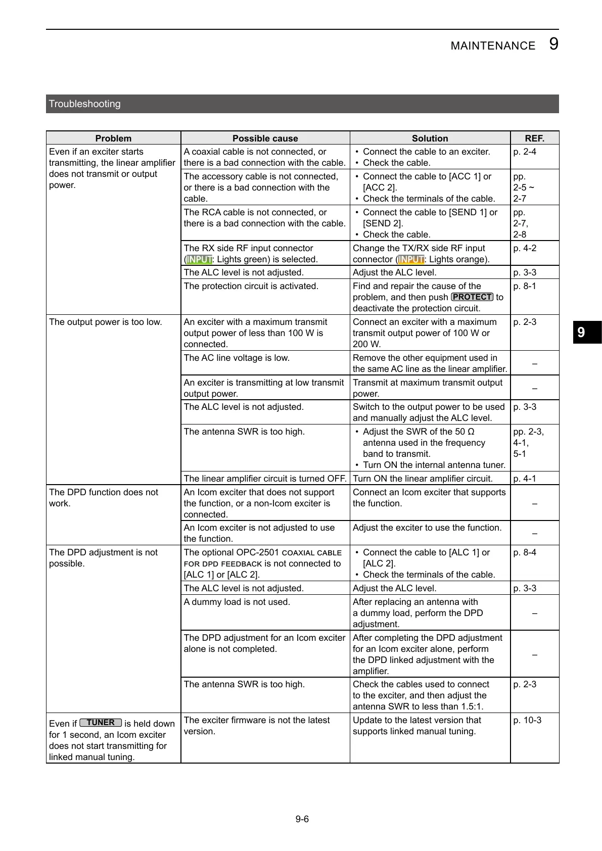 Problem Possible cause Solution REF.